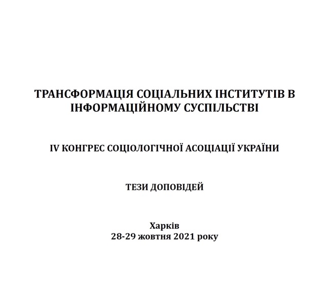 IV Конгрес Соціологічної асоціації України «Трансформація соціальних інститутів в інформаційному суспільстві» (онлайн).