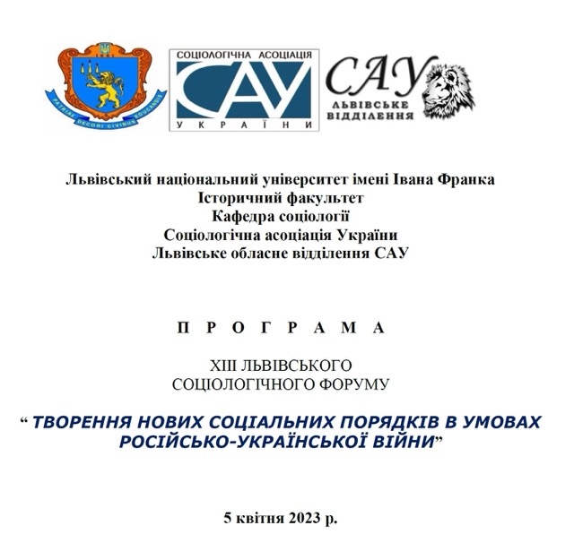 XIII Львівський соціологічний форум «Творення нових соціальних порядків в умовах російсько-української війни» (онлайн).
