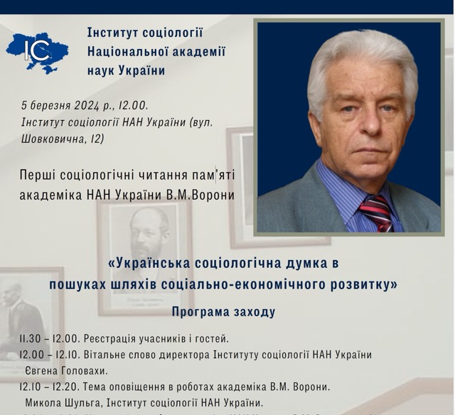 Перші соціологічні читання пам’яті академіка НАНУ В.М. Ворони «Українська соціологічна думка в пошуках шляхів соціально-економічного розвитку».