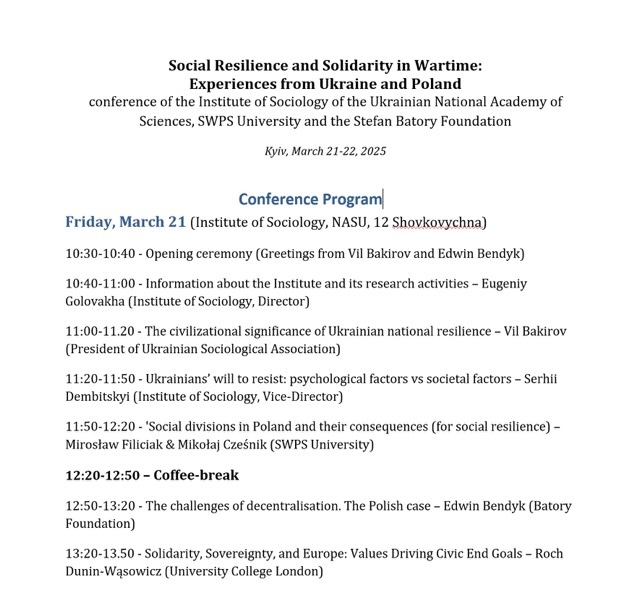 Конференція «Соціальна стійкість та солідарність у воєнний час: досвід України та Польщі».
